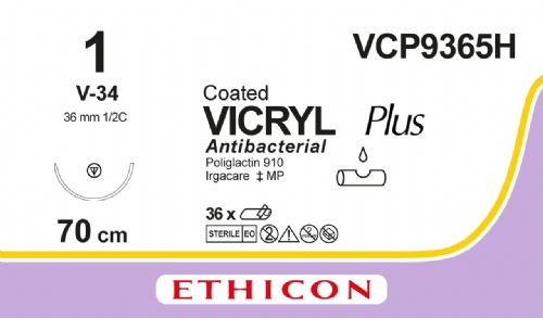 • VCP9365H COATED VICRYL Plus Antibacterial (polyglactin 910) Suture £201.72 (£242.06 inc VAT) VIOLET, BRAIDED, 1XV-34, 1, 70CM