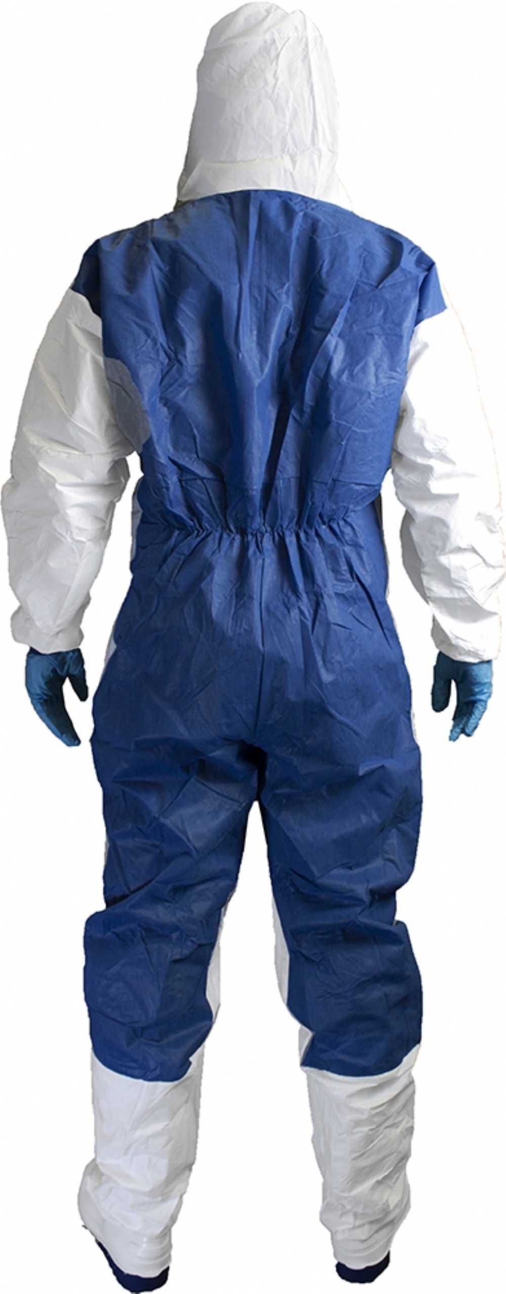 For secure and practical coverage, the coverall features an elasticated hood, cuffs, and ankles to help maintain a close fit and reduce contamination risk. A front zip fastening with protective storm flap supports easy donning and removal while helping maintain barrier integrity.