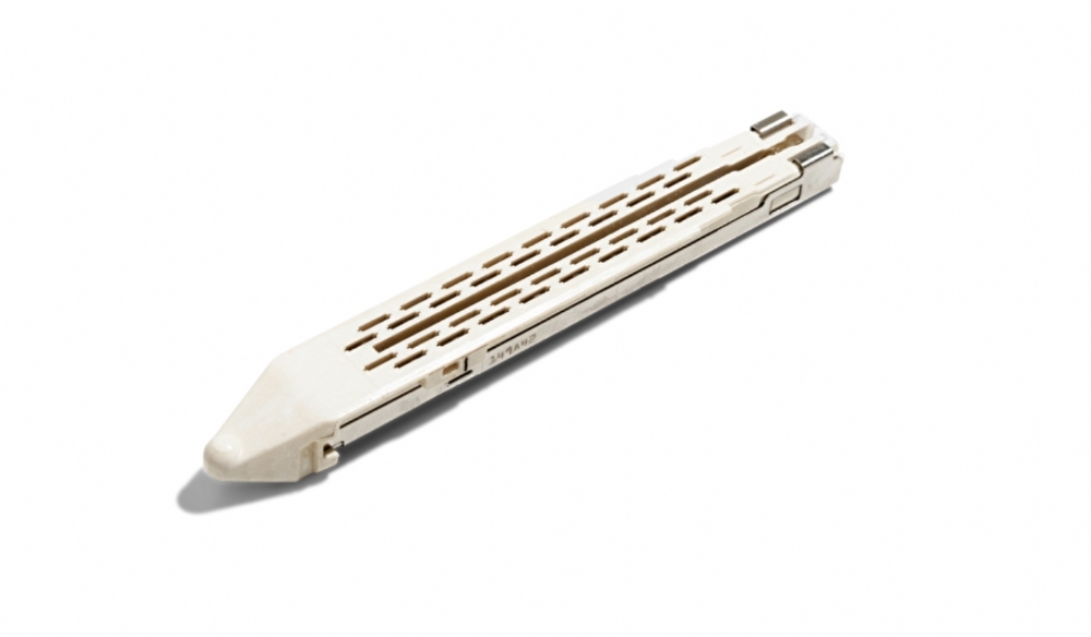 The white vascular cartridge is designed specifically for thin and vascular tissue structures, supporting precise tissue compression and staple formation.