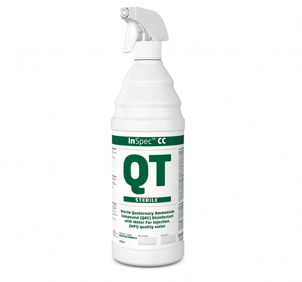 InSpec QT Biocide Solution & Wipes (Sterile) are broad-spectrum, quaternary ammonium compound (QAC) disinfectants developed for routine surface disinfection in cleanroom, pharmaceutical, laboratory and other GMP-regulated controlled environments where sterility assurance is required.