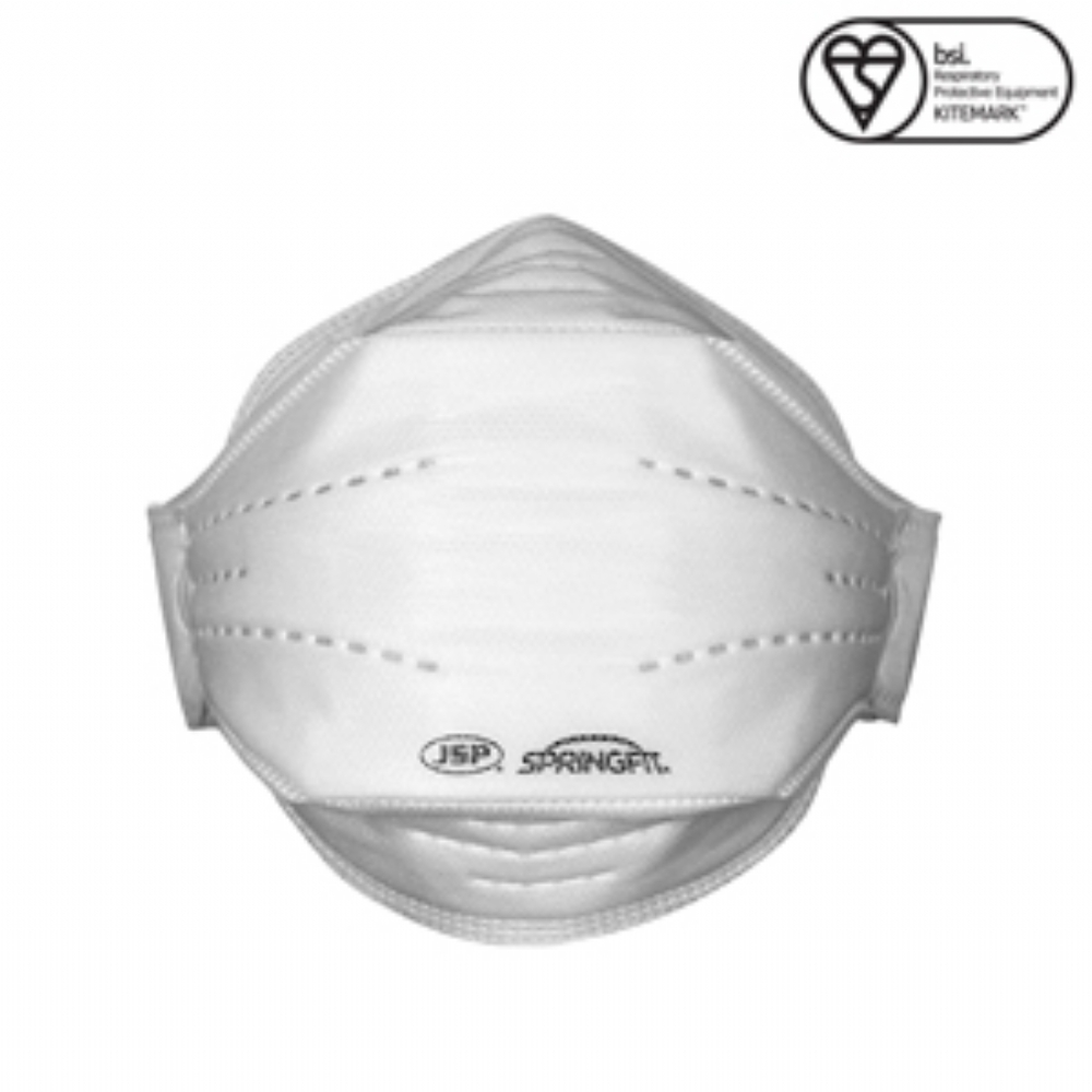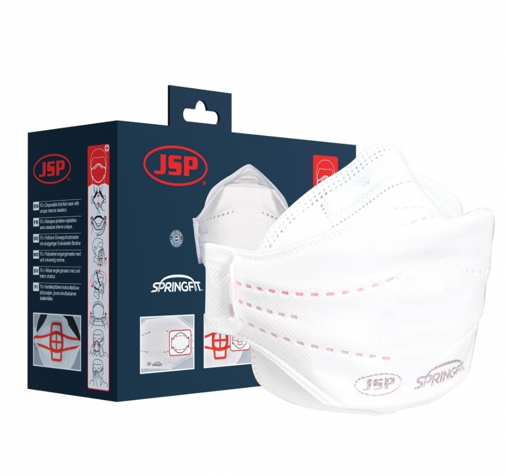 The JSP SpringFit™ 431ML FFP3 Disposable Mask provides EN149 FFP3 respiratory protection with ergonomic secure fit for comfort, medium large size, supplied in boxes of ten for workplaces.