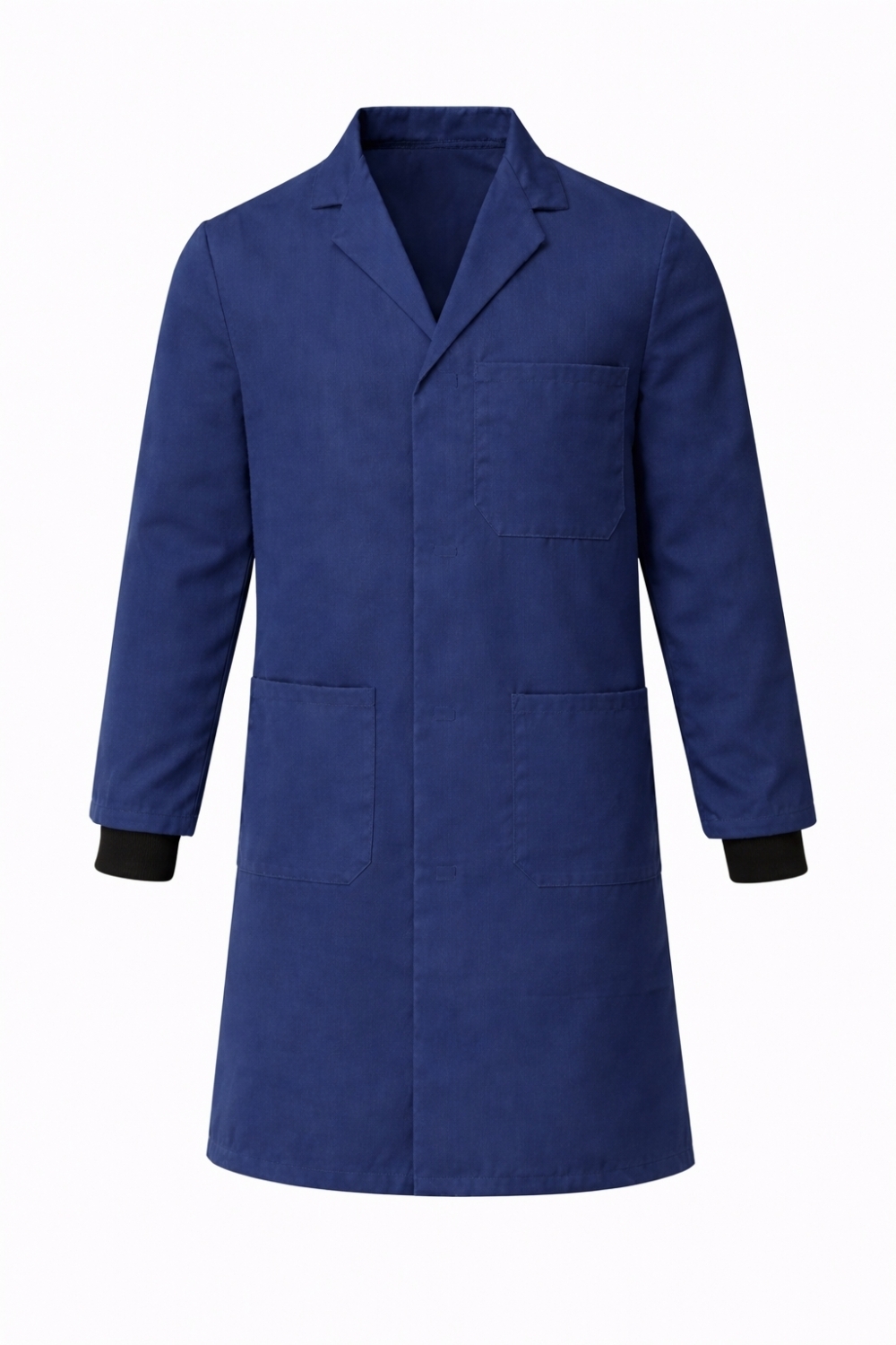 Professional 100 percent cotton drill lab coat with rib knit cuffs, chest pocket and two lower pockets. Durable 260-270 GSM fabric. Washable at 30C. Available in multiple colours and sizes XS-5XL.