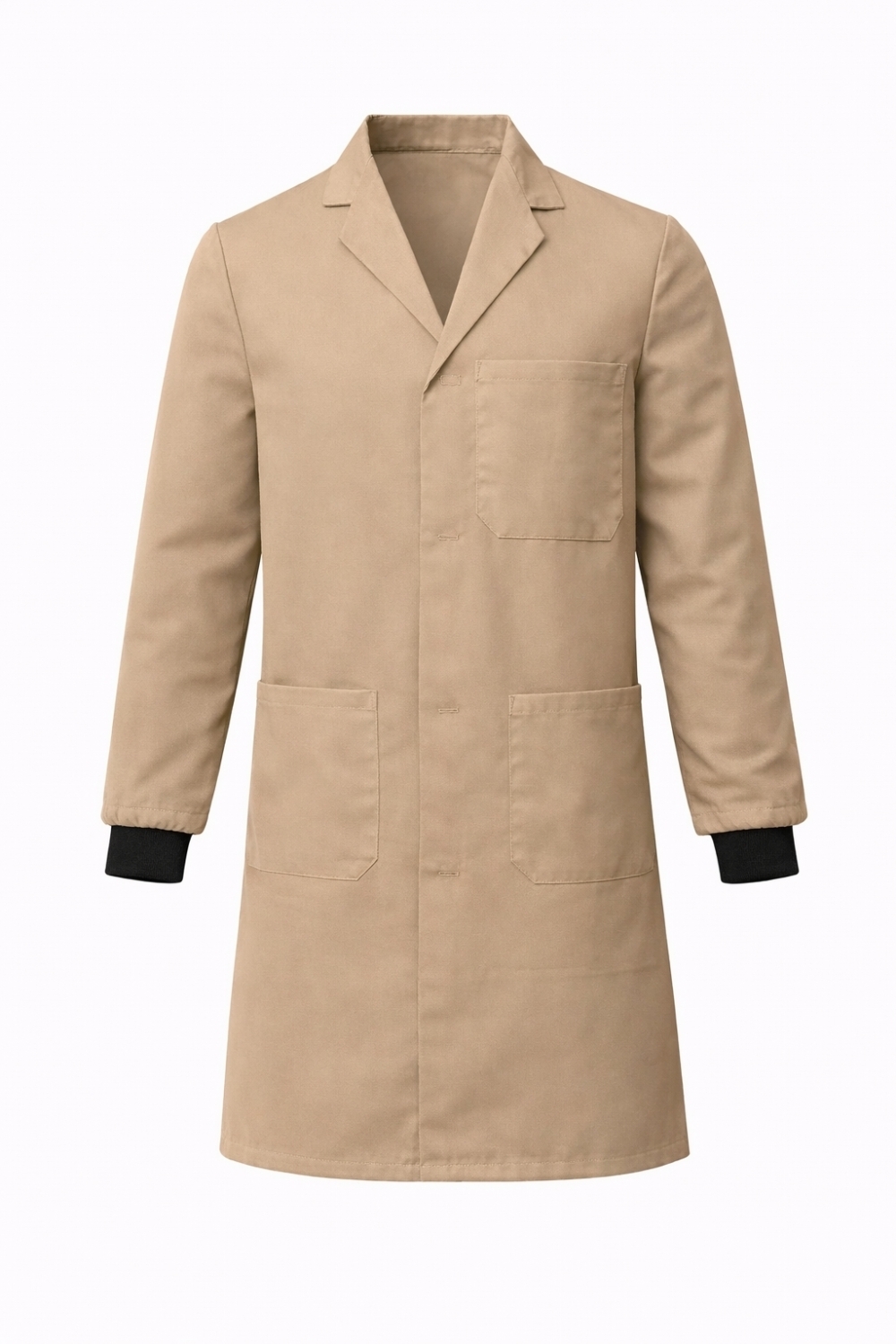 Professional 100 percent cotton drill lab coat with rib knit cuffs, chest pocket and two lower pockets. Durable 260-270 GSM fabric. Washable at 30C. Available in multiple colours and sizes XS-5XL.