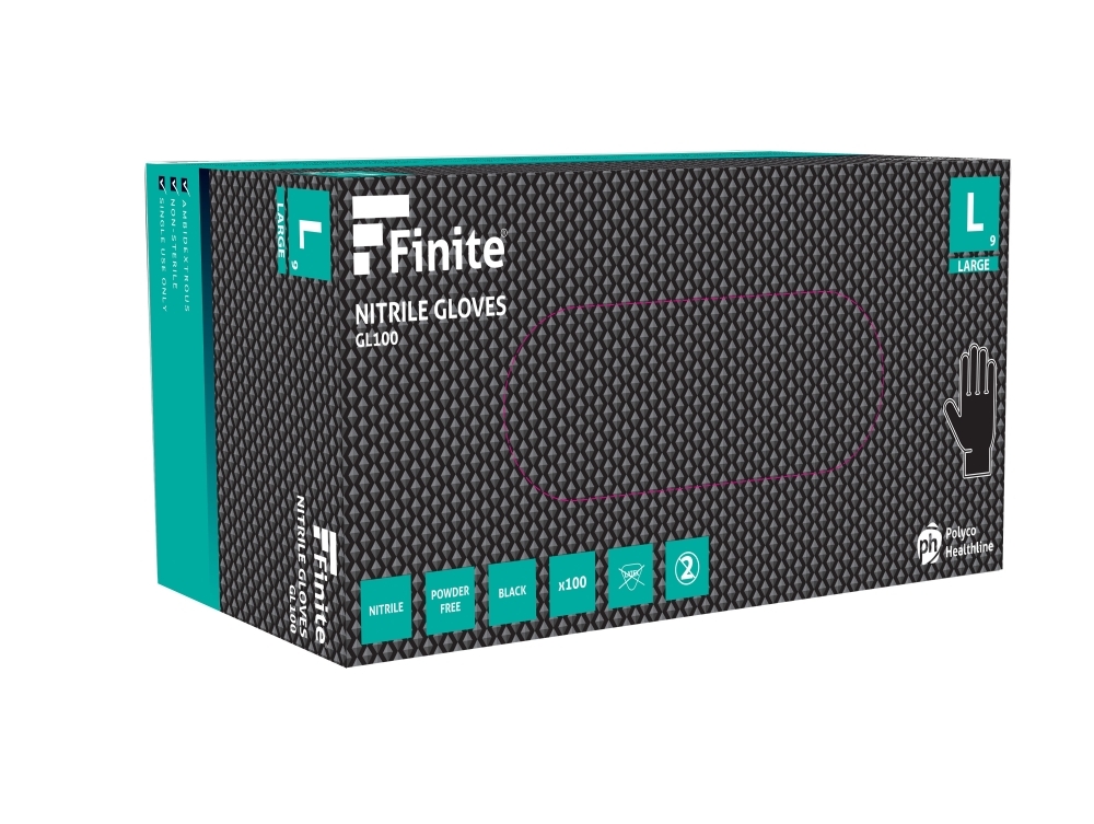 Buy GL100 - Polyco Healthline GL100 Finite Black Nitrile Powder-Free Disposable Gloves – Latex Free Industrial PPE online from us for just From £6.90 (£8.28 inc VAT), contact us for bulk and wholesale orders.