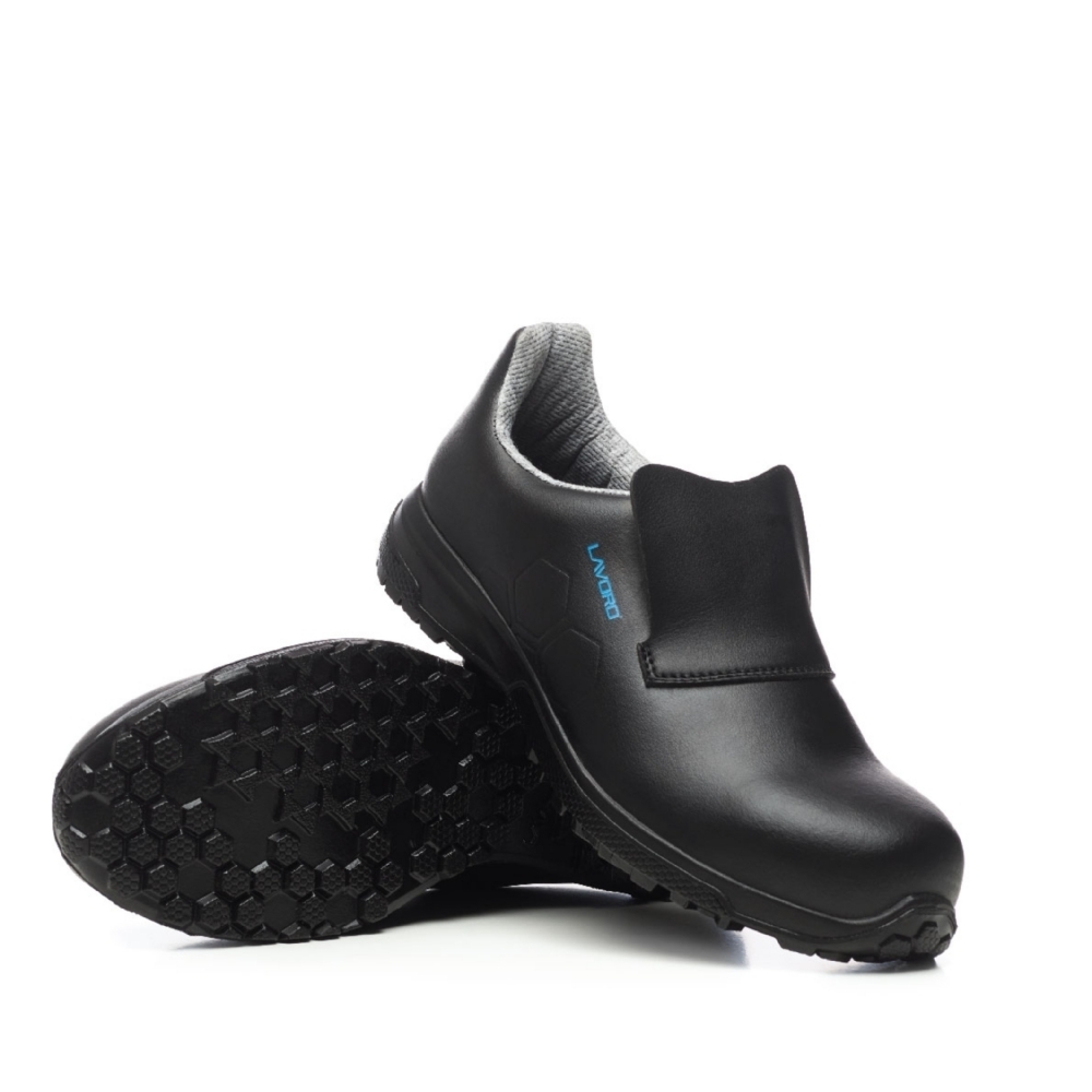 Underfoot, the shock-absorbing PU sole reduces fatigue during prolonged wear, while the SRC-rated slip-resistant outsole delivers excellent grip on smooth, wet and tiled surfaces. The slip-on design allows fast donning and removal, and the professional black finish offers a smart, versatile appearance across industrial and warehouse settings.
